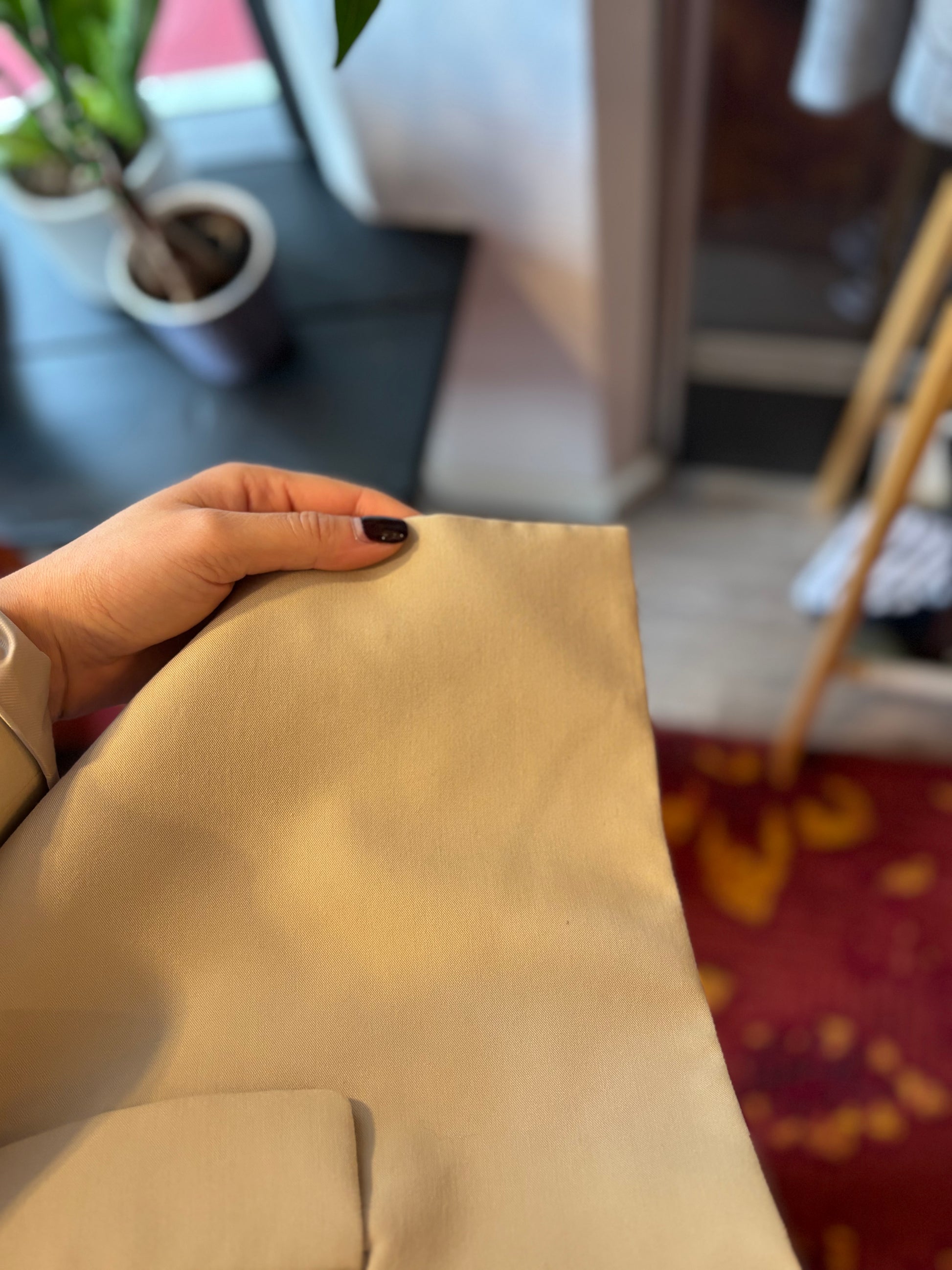 Bij elk product staat de maat duidelijk vermeld. Dit is de exacte maat zoals aangegeven op het label. Om een zo goed mogelijk beeld van de pasvorm te geven, gebruikt Dominique soms clips om de kleding mooi passend te maken voor de foto’s.