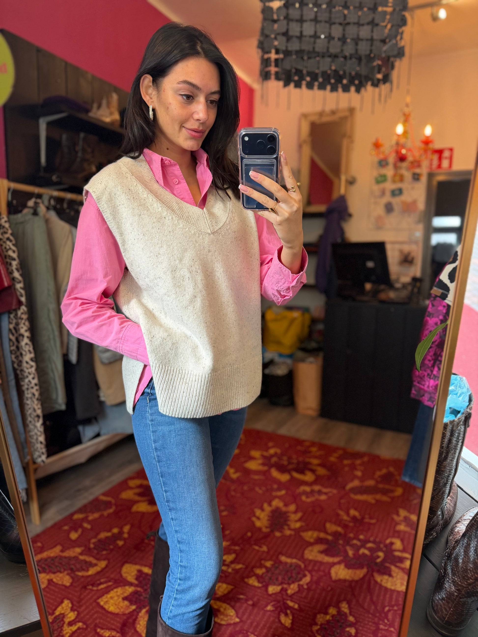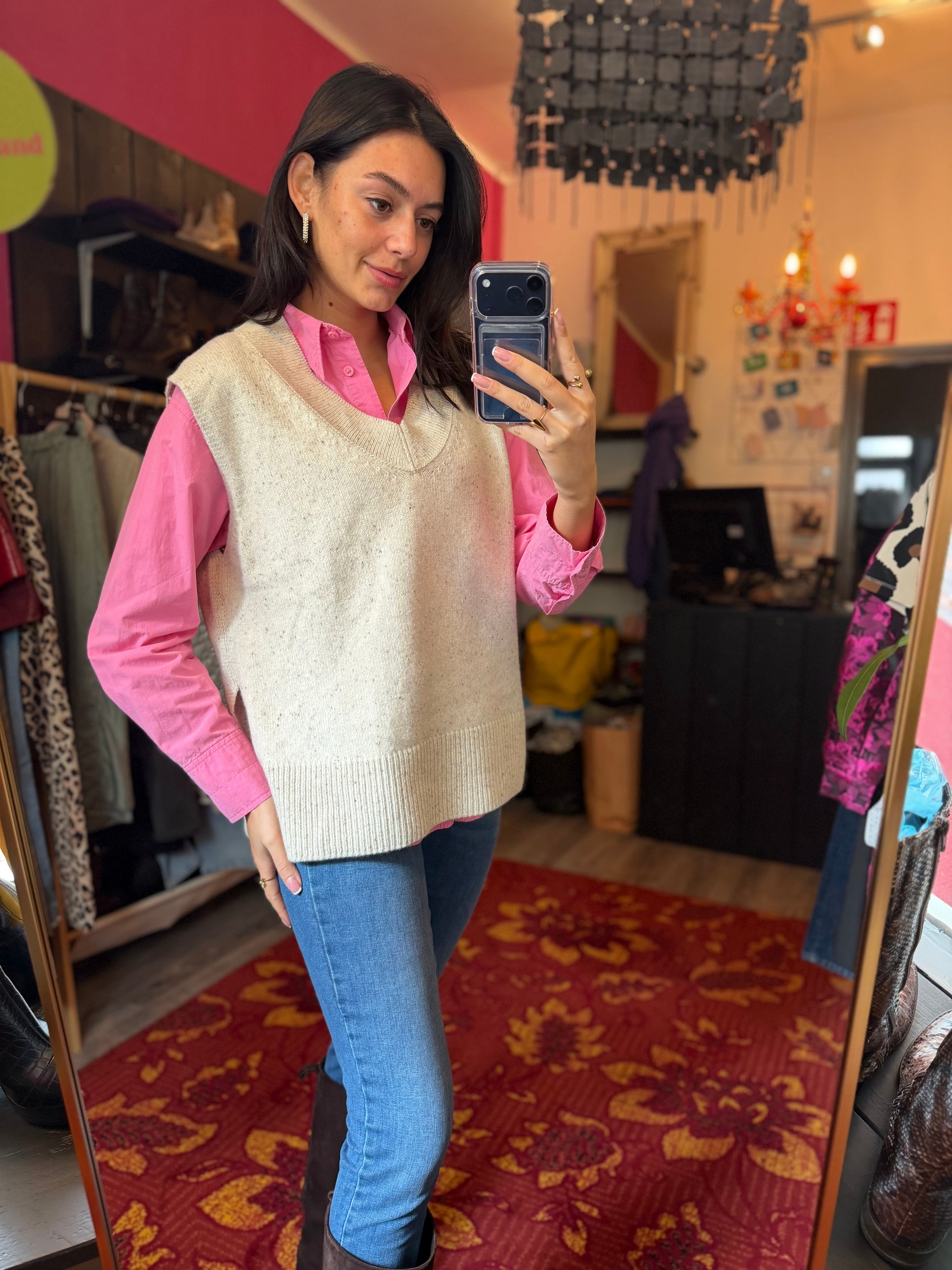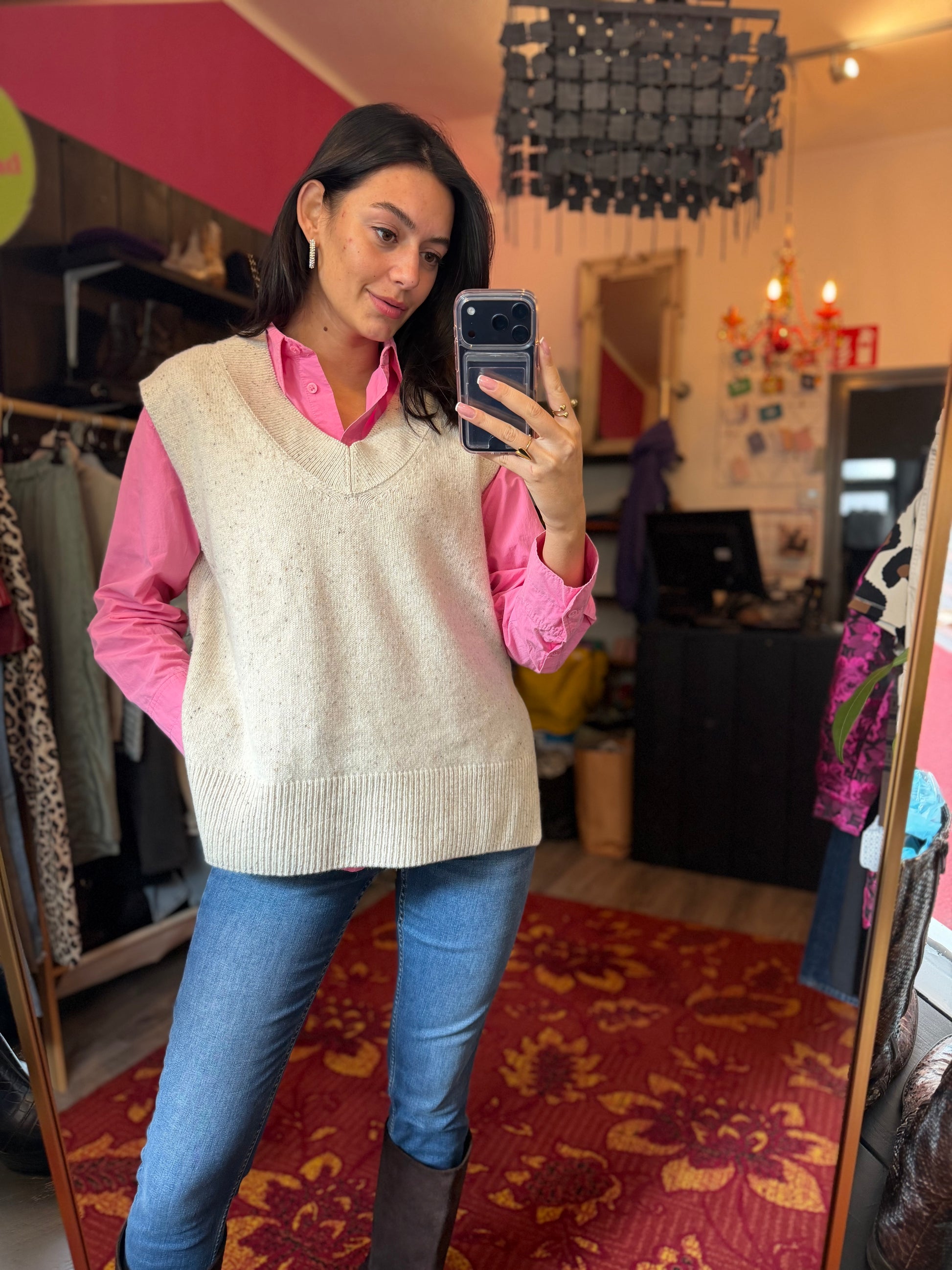 Bij elk product staat de maat duidelijk vermeld. Dit is de exacte maat zoals aangegeven op het label. Om een zo goed mogelijk beeld van de pasvorm te geven, gebruikt Dominique soms clips om de kleding mooi passend te maken voor de foto’s.