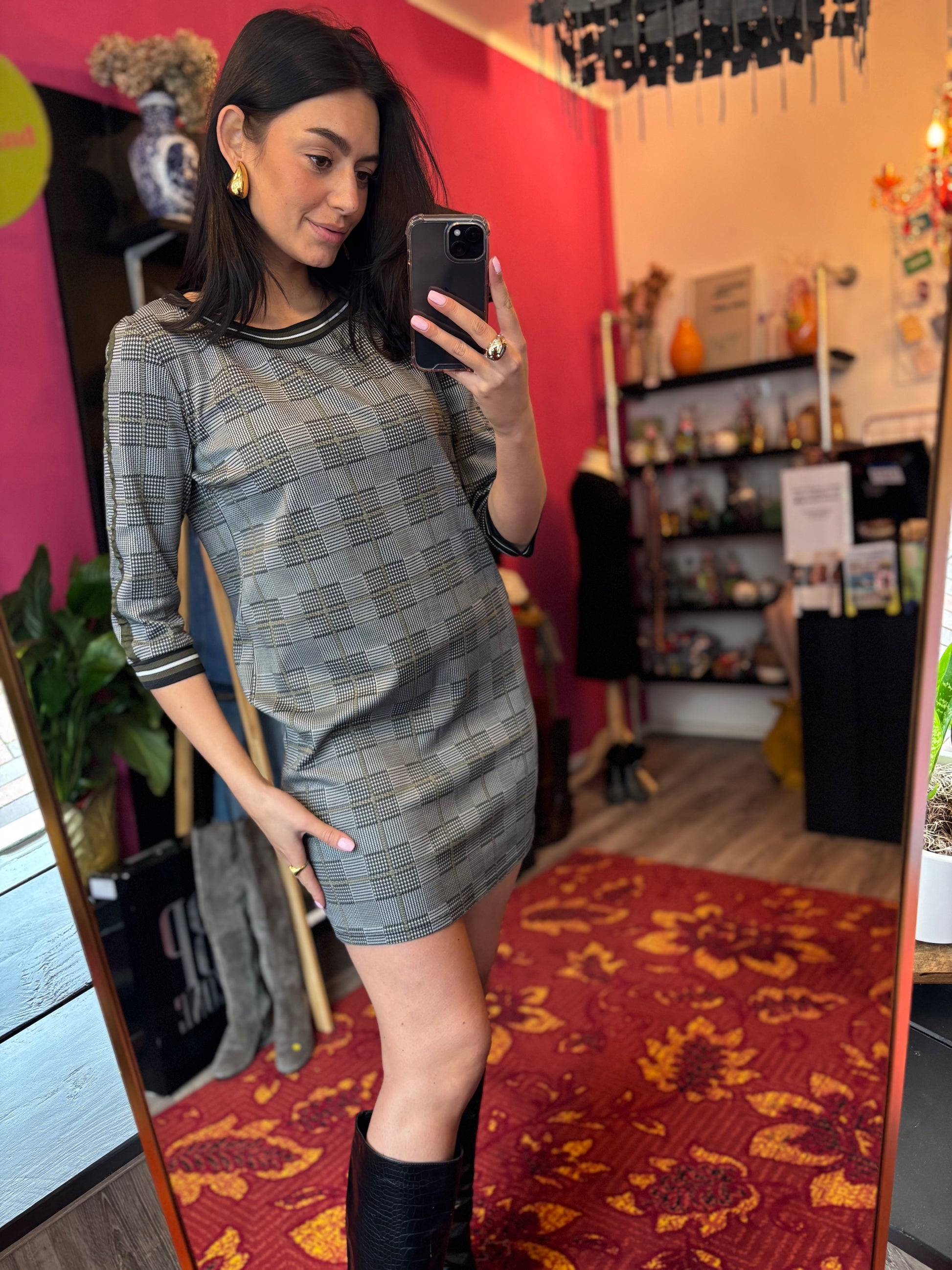 Dominique is 173 cm lang en draagt verschillende maten op de foto’s.