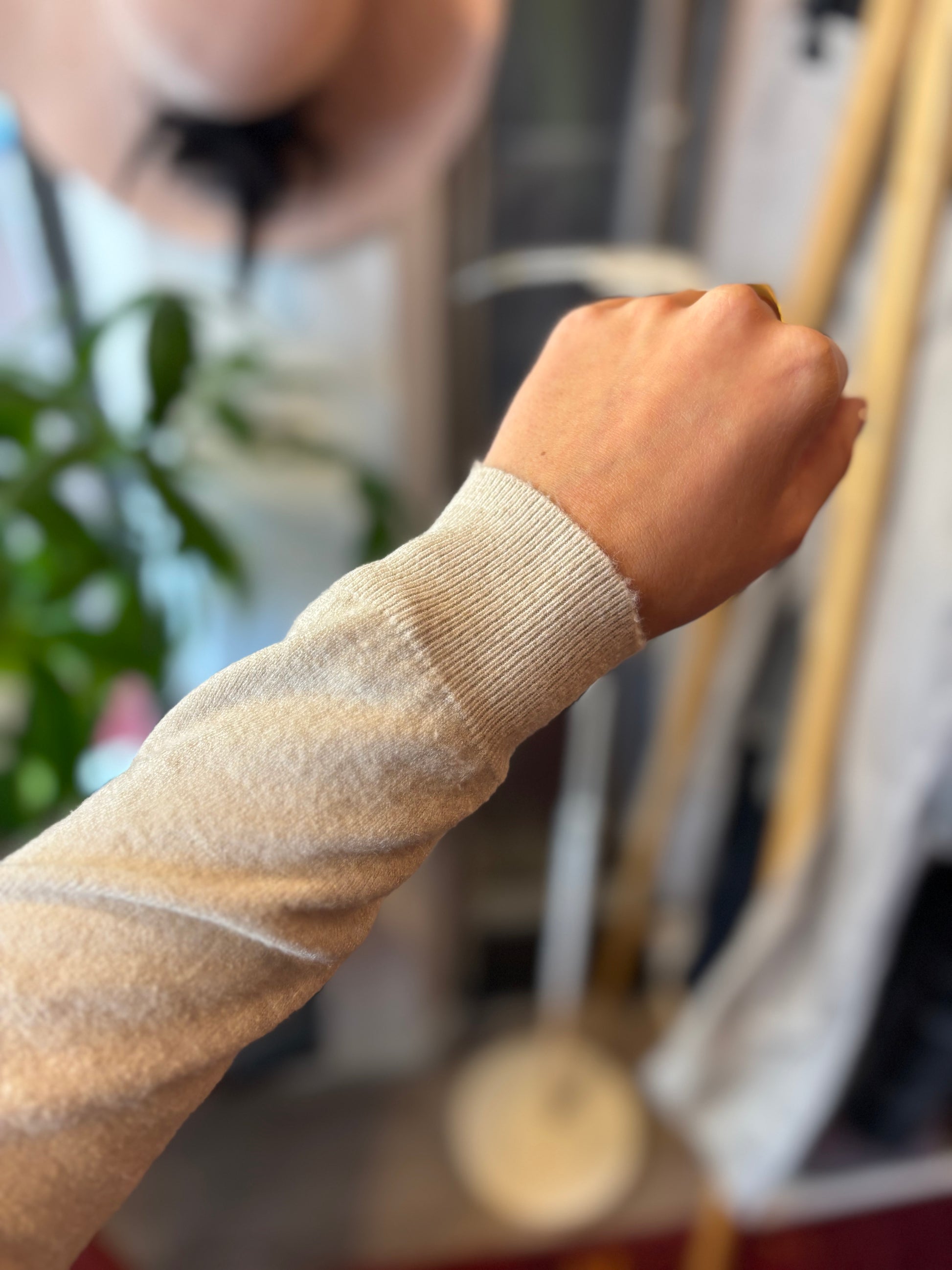 Bij elk product staat de maat duidelijk vermeld. Dit is de exacte maat zoals aangegeven op het label. Om een zo goed mogelijk beeld van de pasvorm te geven, gebruikt Dominique soms clips om de kleding mooi passend te maken voor de foto’s.