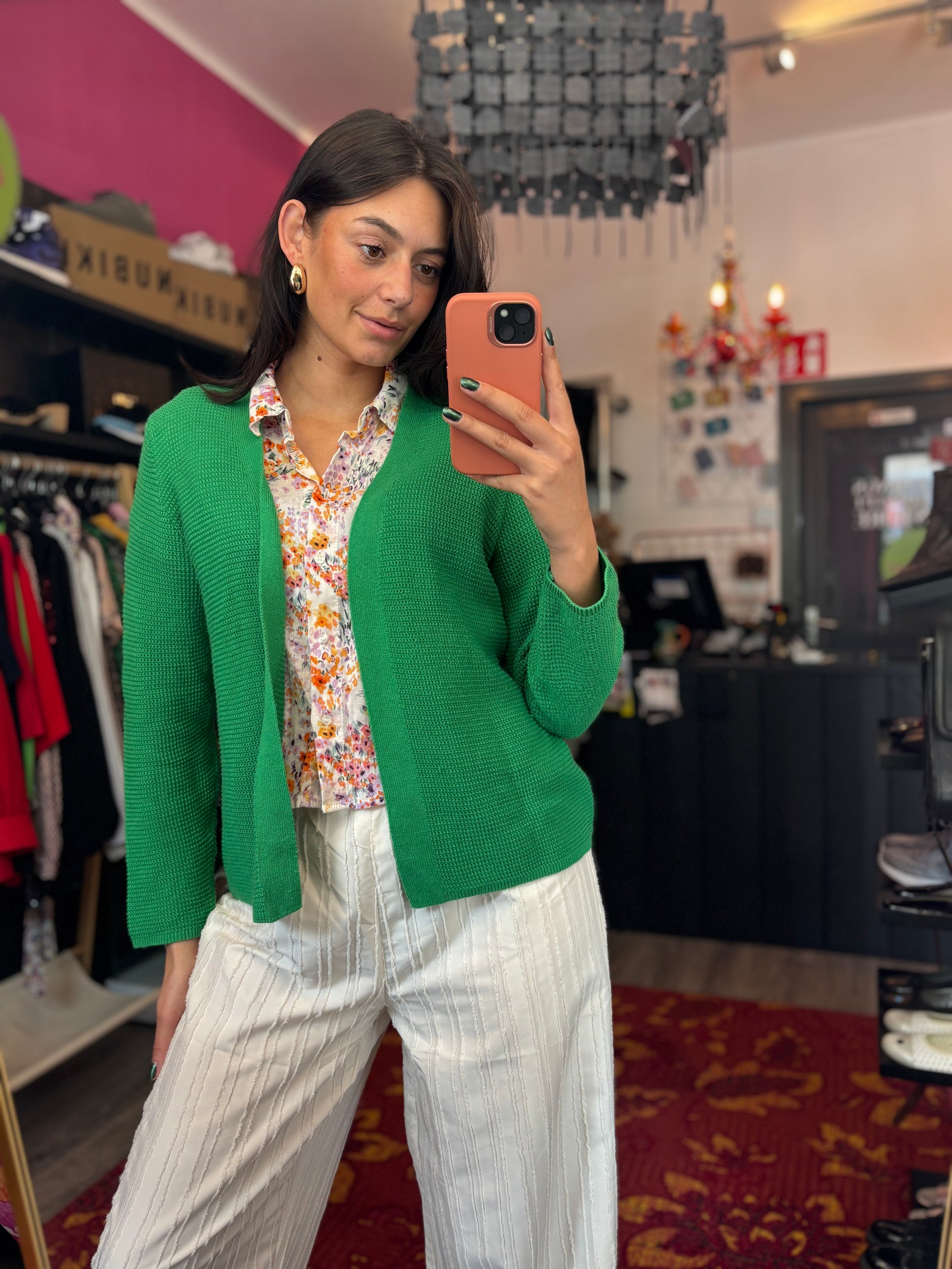 Bij elk product staat de maat duidelijk vermeld. Dit is de exacte maat zoals aangegeven op het label. Om een zo goed mogelijk beeld van de pasvorm te geven, gebruikt Dominique soms clips om de kleding mooi passend te maken voor de foto’s.