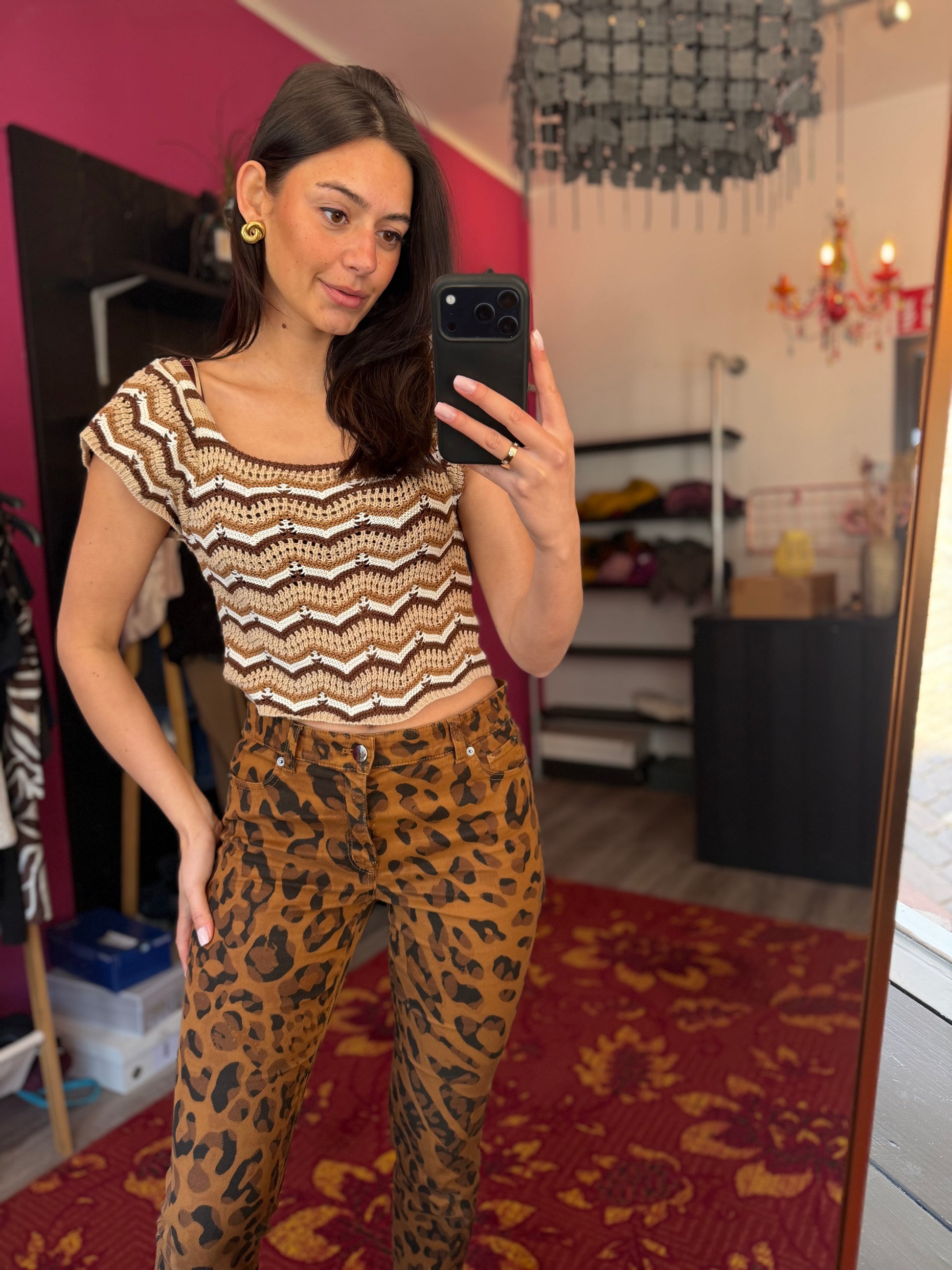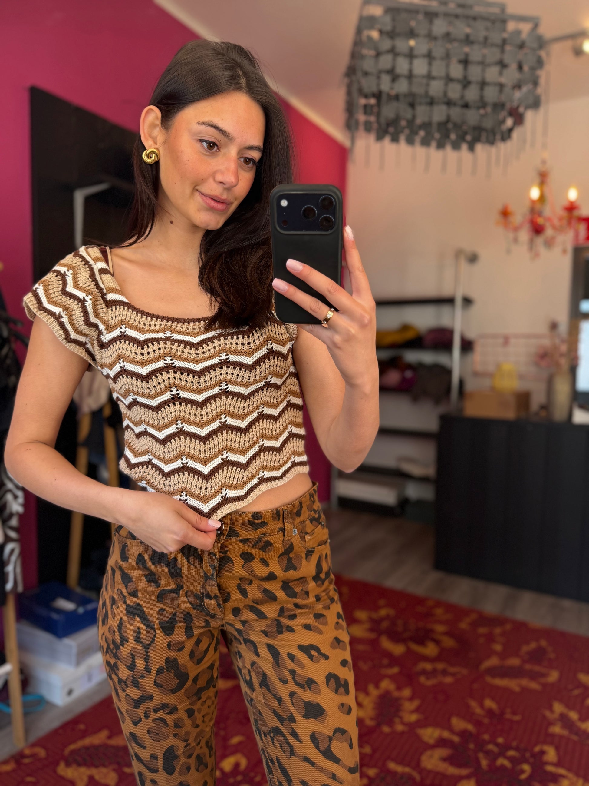218-29 Bruine gehaakte top maat M