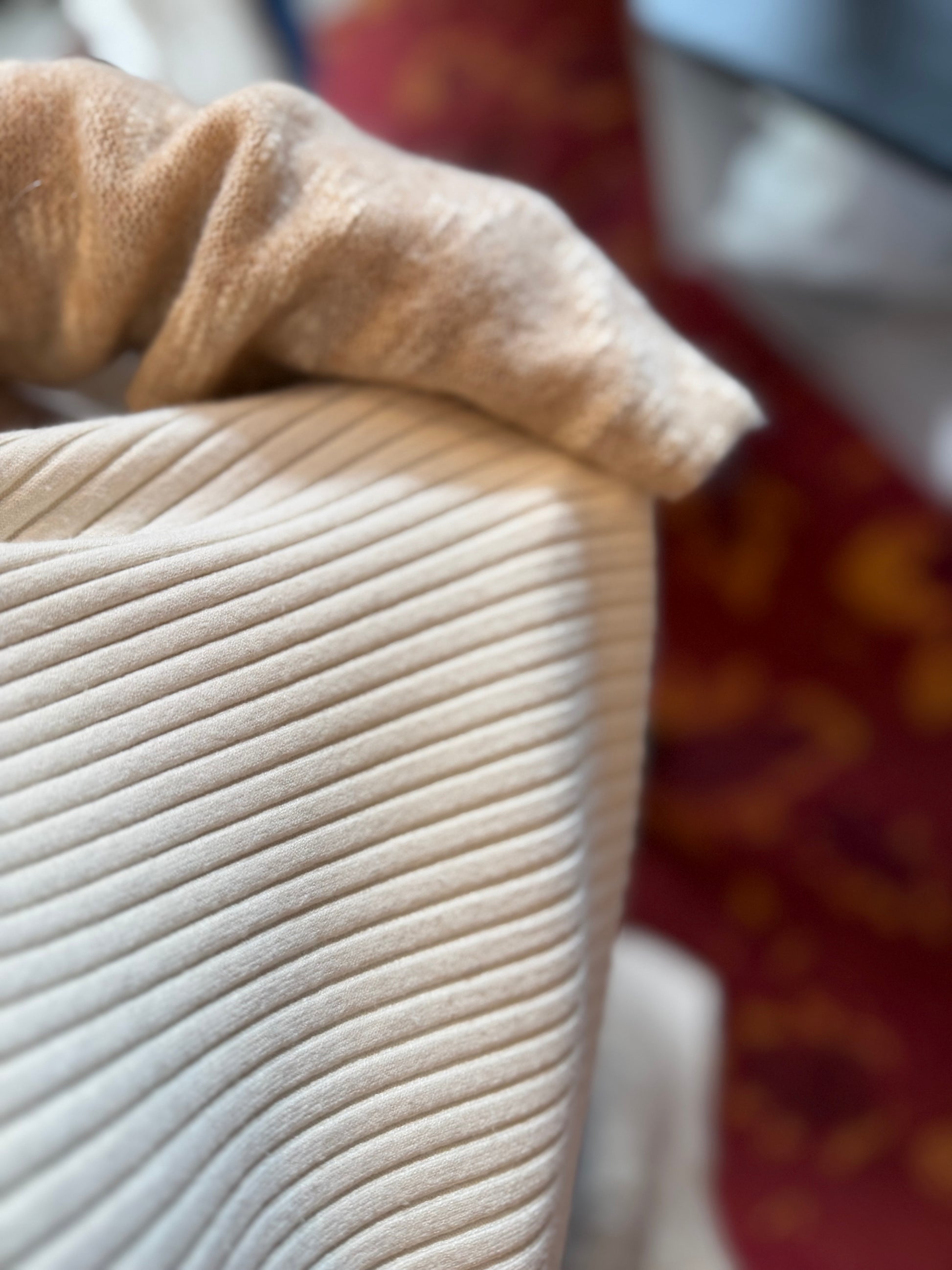 Bij elk product staat de maat duidelijk vermeld. Dit is de exacte maat zoals aangegeven op het label. Om een zo goed mogelijk beeld van de pasvorm te geven, gebruikt Dominique soms clips om de kleding mooi passend te maken voor de foto’s.