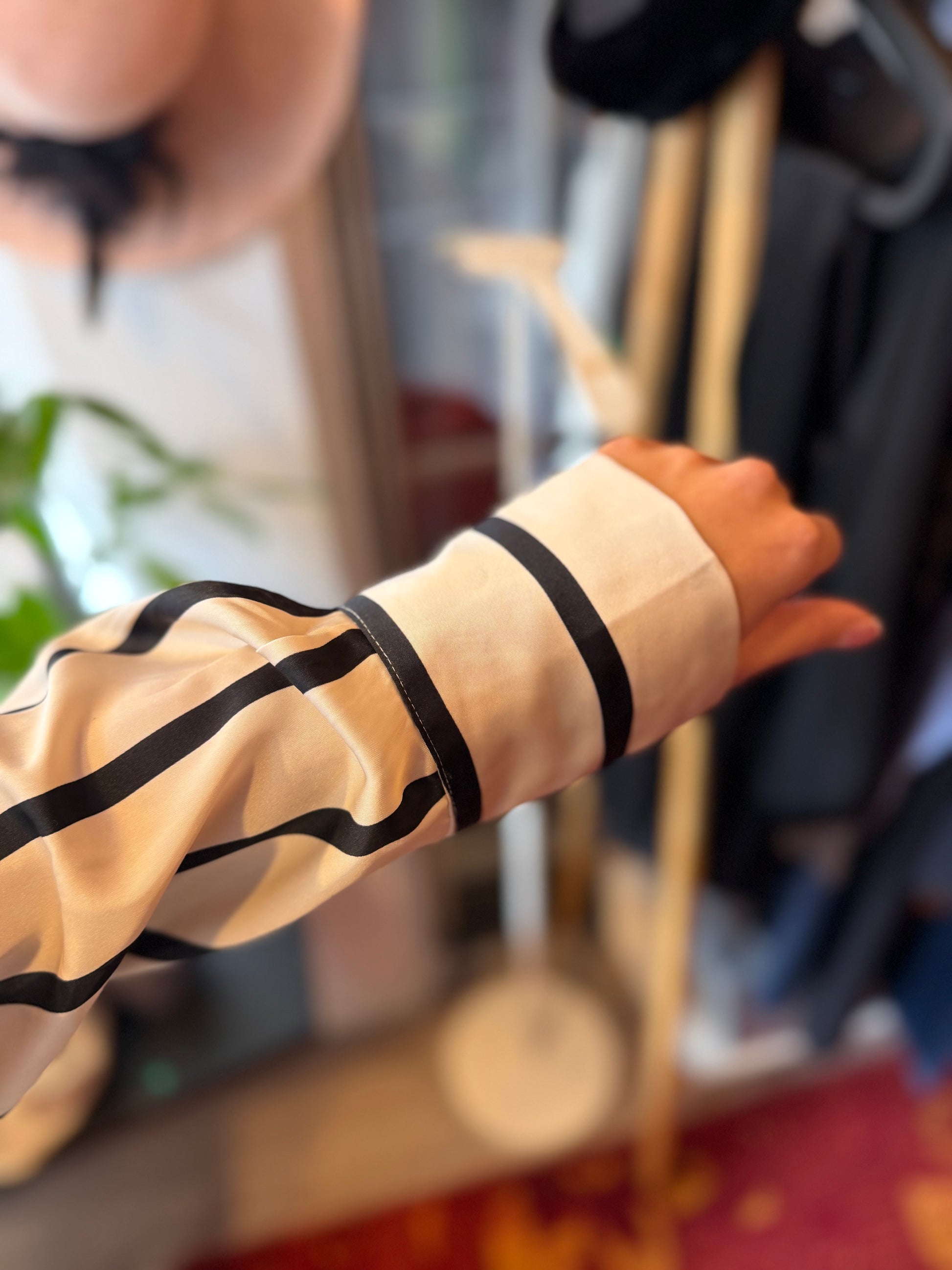 Bij elk product staat de maat duidelijk vermeld. Dit is de exacte maat zoals aangegeven op het label. Om een zo goed mogelijk beeld van de pasvorm te geven, gebruikt Dominique soms clips om de kleding mooi passend te maken voor de foto’s.