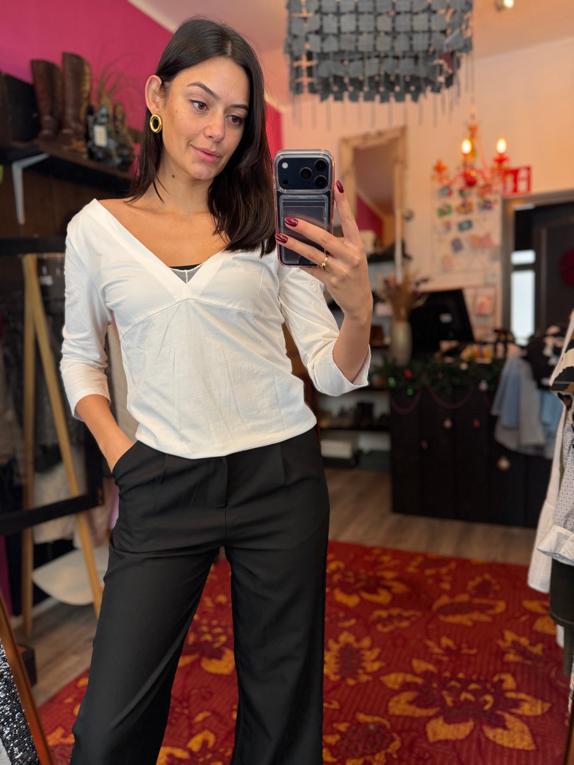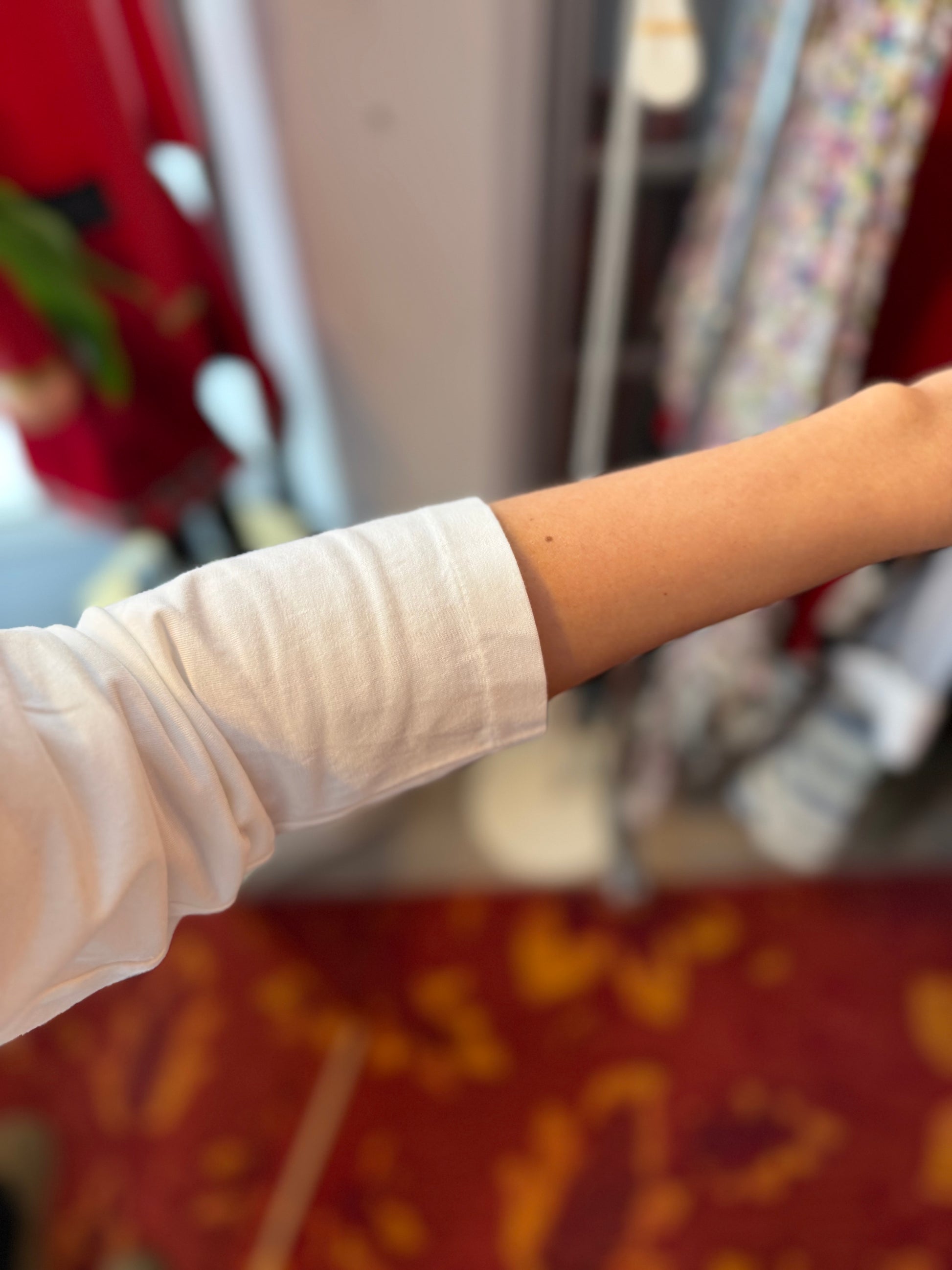Bij elk product staat de maat duidelijk vermeld. Dit is de exacte maat zoals aangegeven op het label. Om een zo goed mogelijk beeld van de pasvorm te geven, gebruikt Dominique soms clips om de kleding mooi passend te maken voor de foto’s.