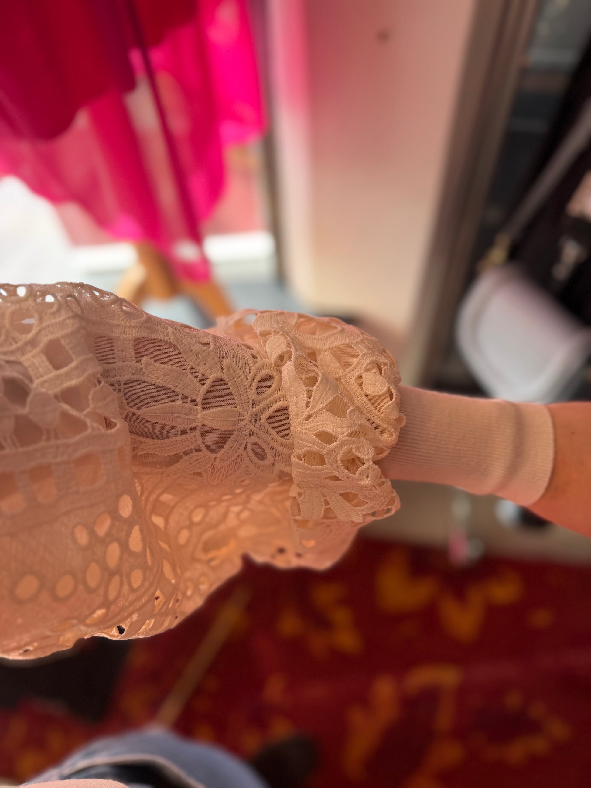 Bij elk product staat de maat duidelijk vermeld. Dit is de exacte maat zoals aangegeven op het label. Om een zo goed mogelijk beeld van de pasvorm te geven, gebruikt Dominique soms clips om de kleding mooi passend te maken voor de foto’s.