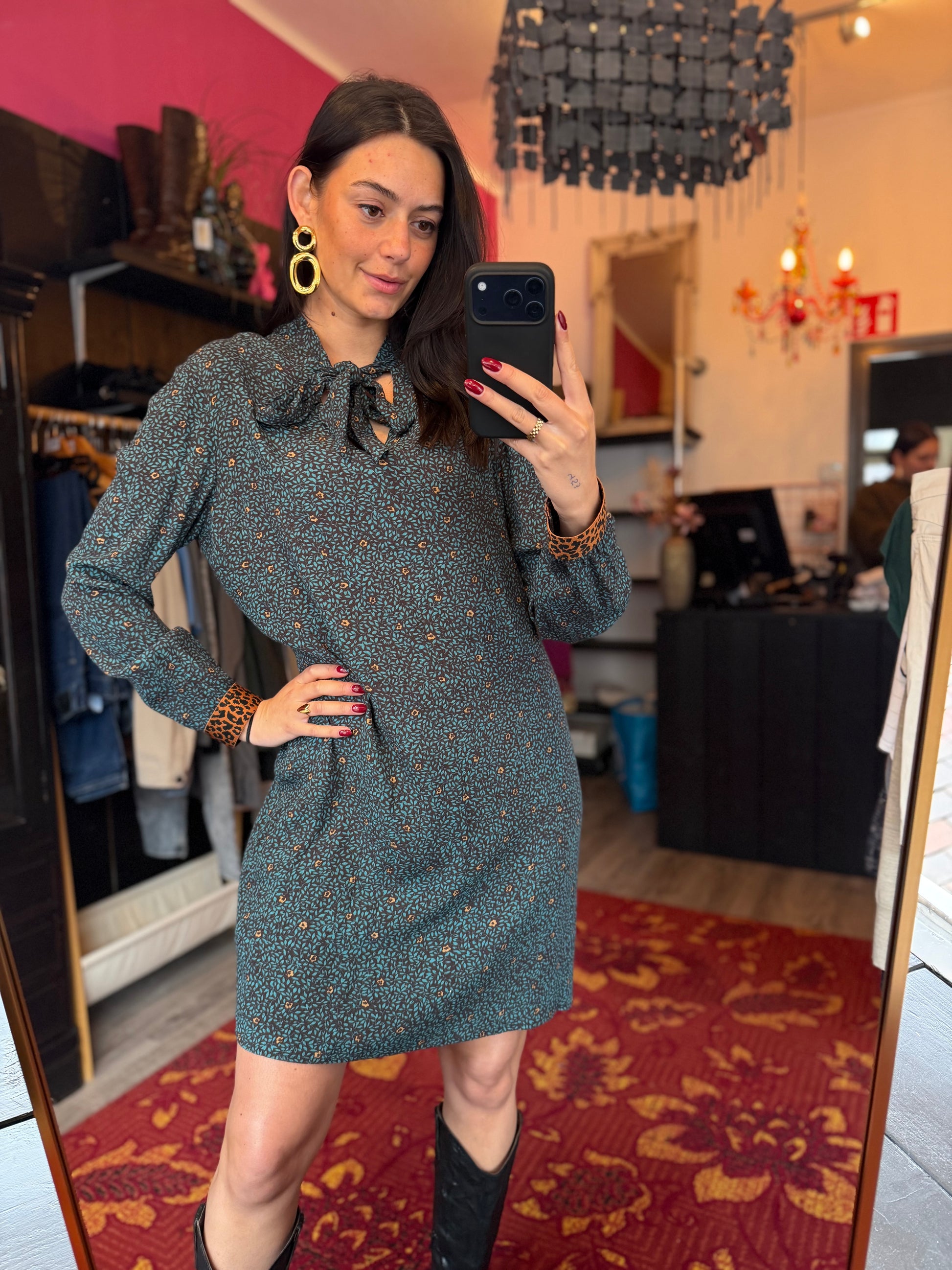 Dominique is 173 cm lang en draagt verschillende maten op de foto’s.