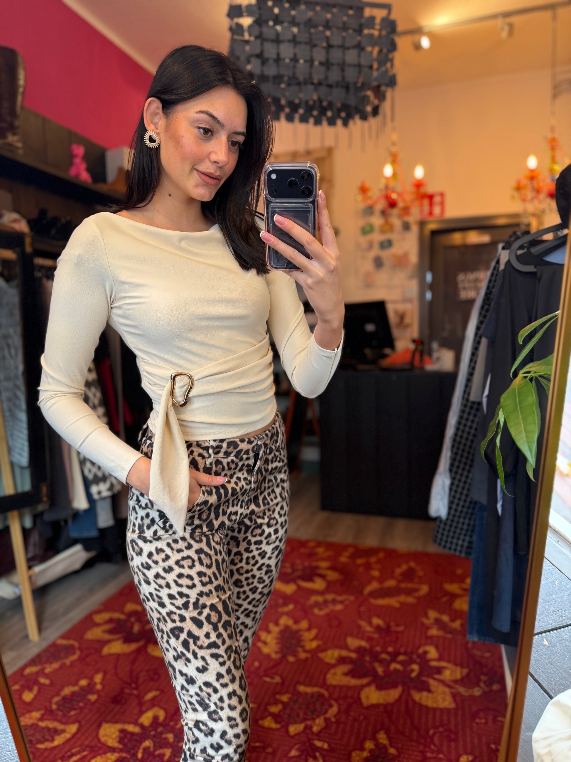 Bij elk product staat de maat duidelijk vermeld. Dit is de exacte maat zoals aangegeven op het label. Om een zo goed mogelijk beeld van de pasvorm te geven, gebruikt Dominique soms clips om de kleding mooi passend te maken voor de foto’s.