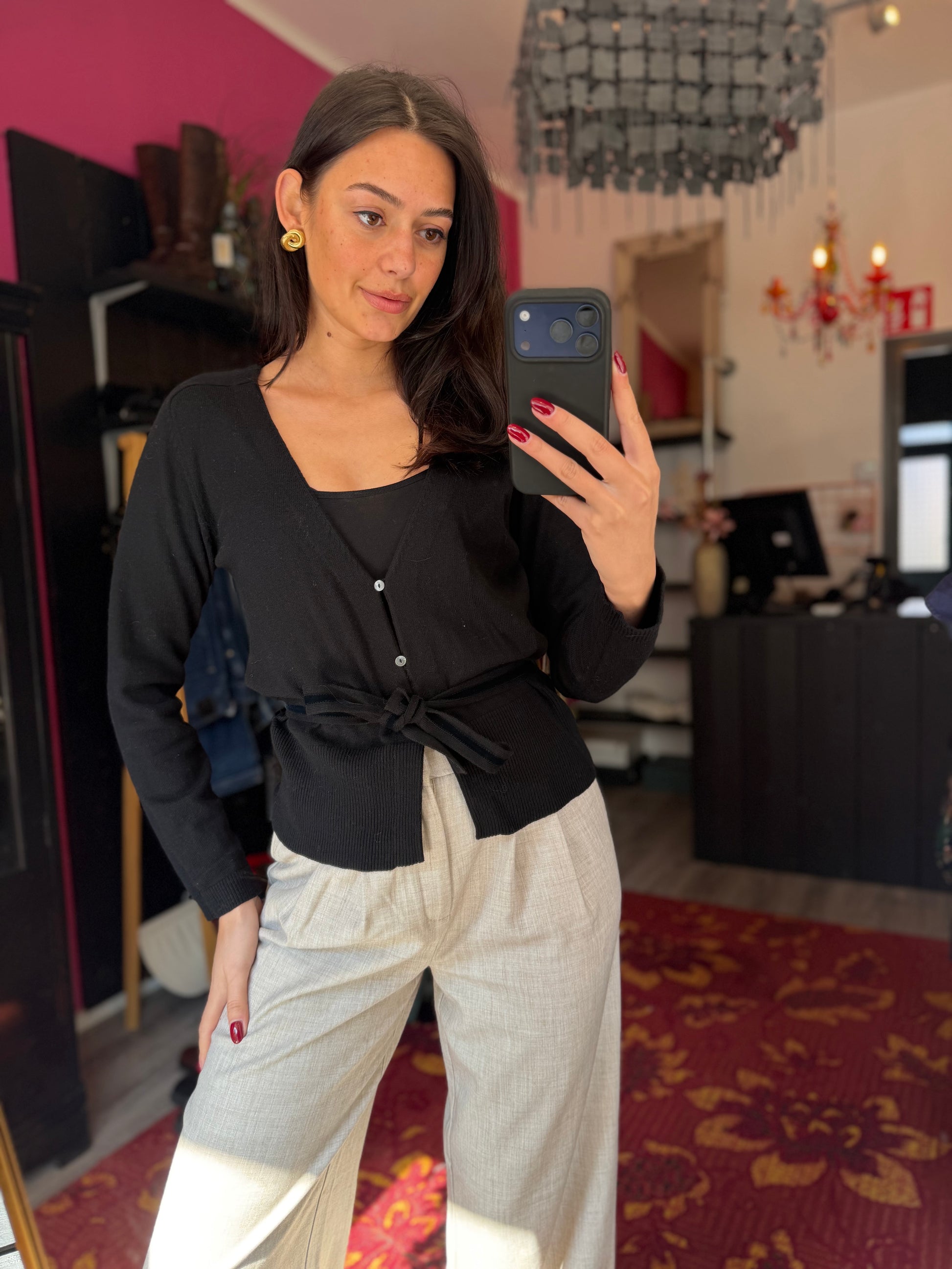 Bij elk product staat de maat duidelijk vermeld. Dit is de exacte maat zoals aangegeven op het label. Om een zo goed mogelijk beeld van de pasvorm te geven, gebruikt Dominique soms clips om de kleding mooi passend te maken voor de foto’s.