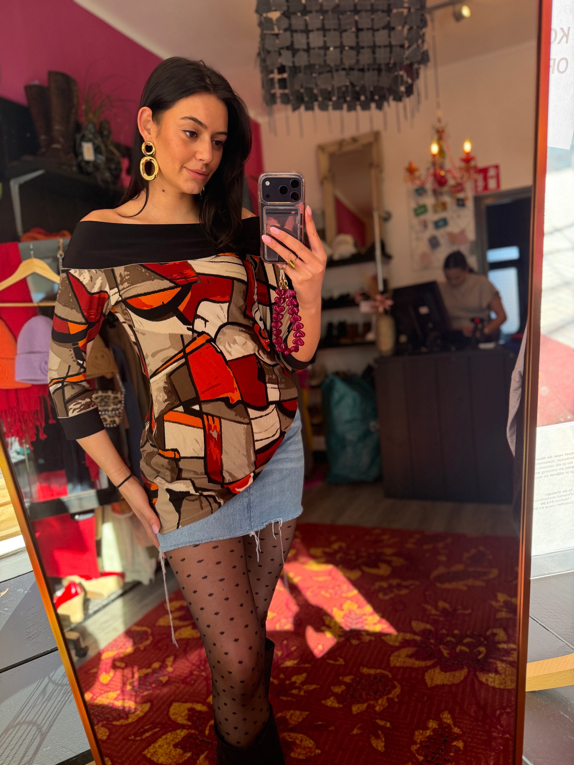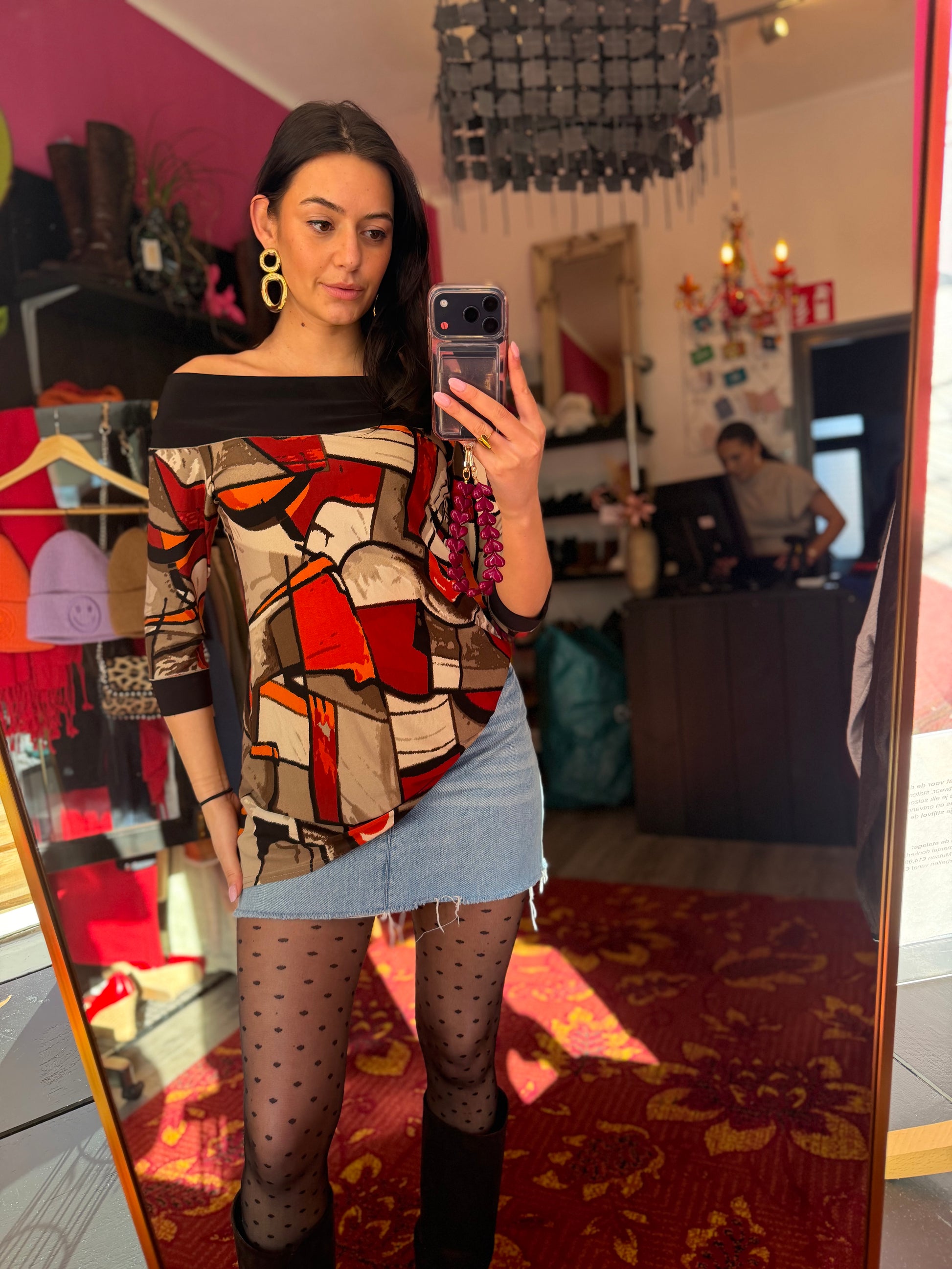 Dominique is 173 cm lang en draagt verschillende maten op de foto’s.