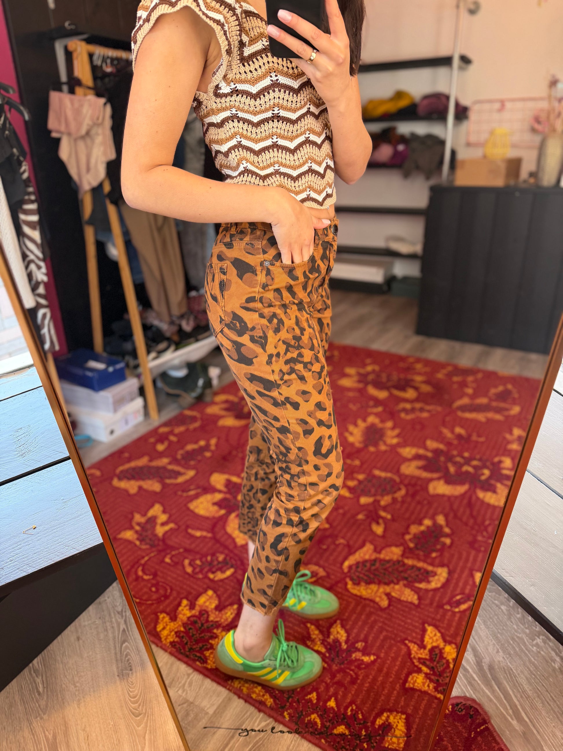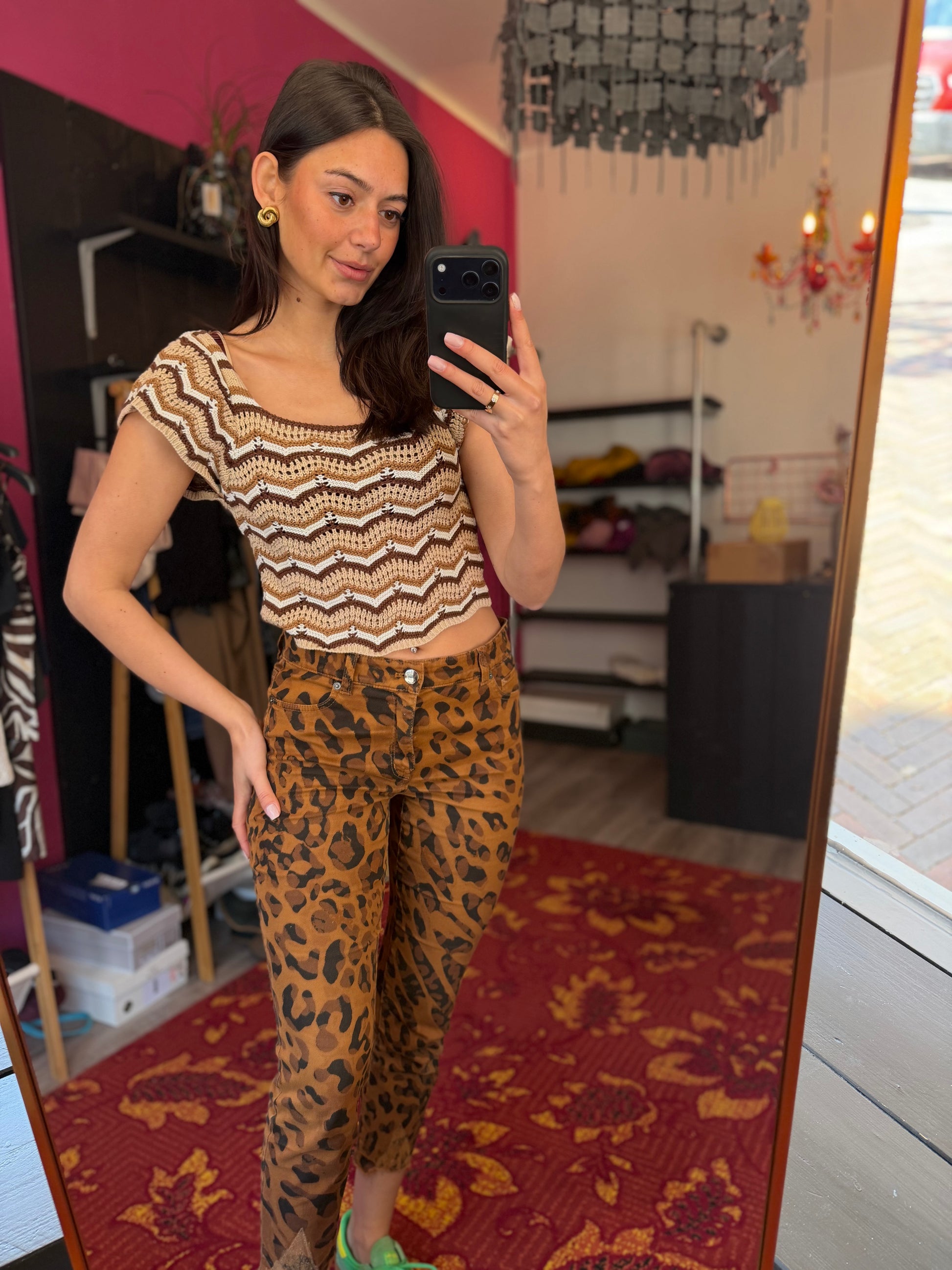 Dominique is 173 cm lang en draagt verschillende maten op de foto’s.