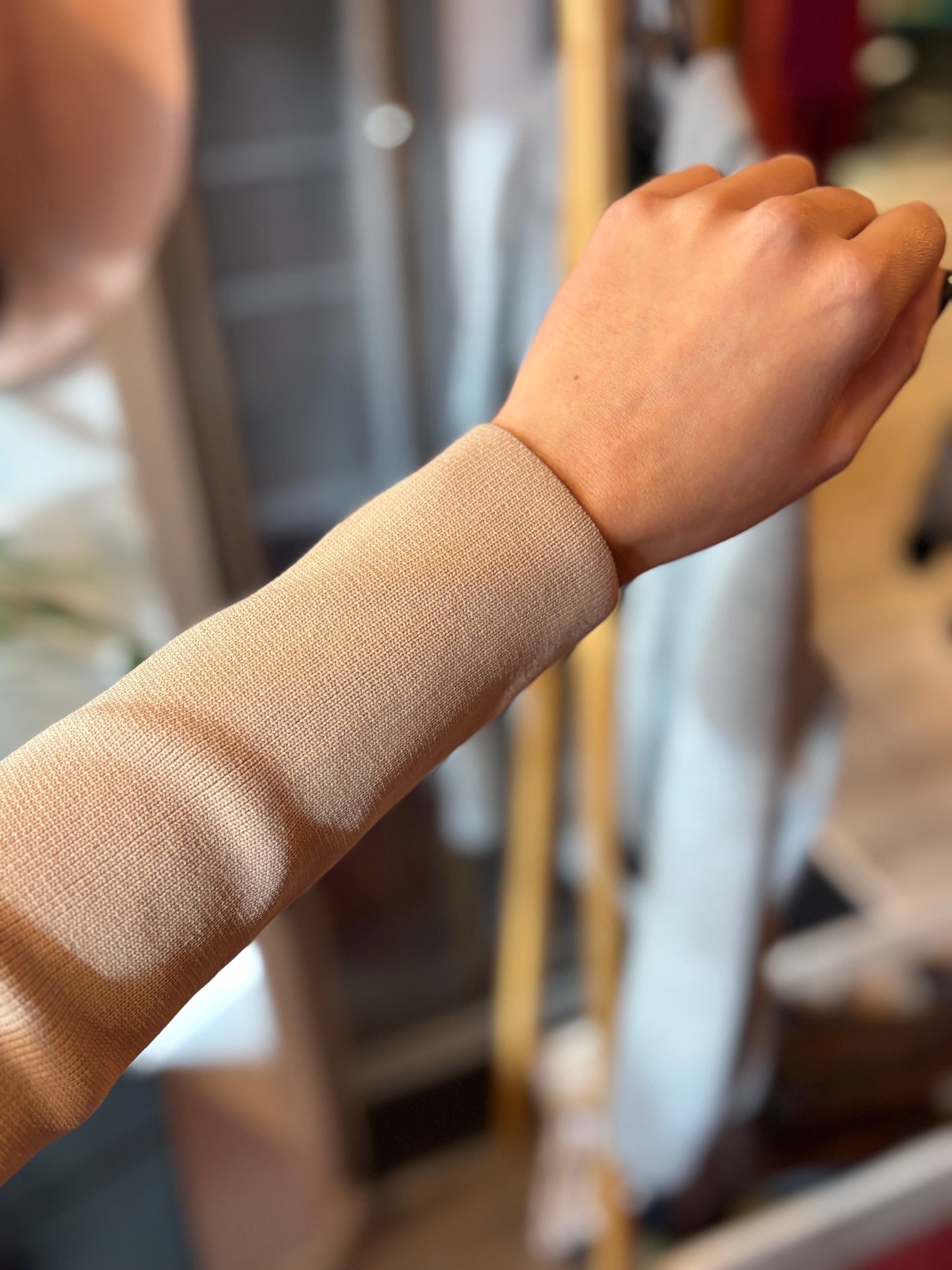 Bij elk product staat de maat duidelijk vermeld. Dit is de exacte maat zoals aangegeven op het label. Om een zo goed mogelijk beeld van de pasvorm te geven, gebruikt Dominique soms clips om de kleding mooi passend te maken voor de foto’s.