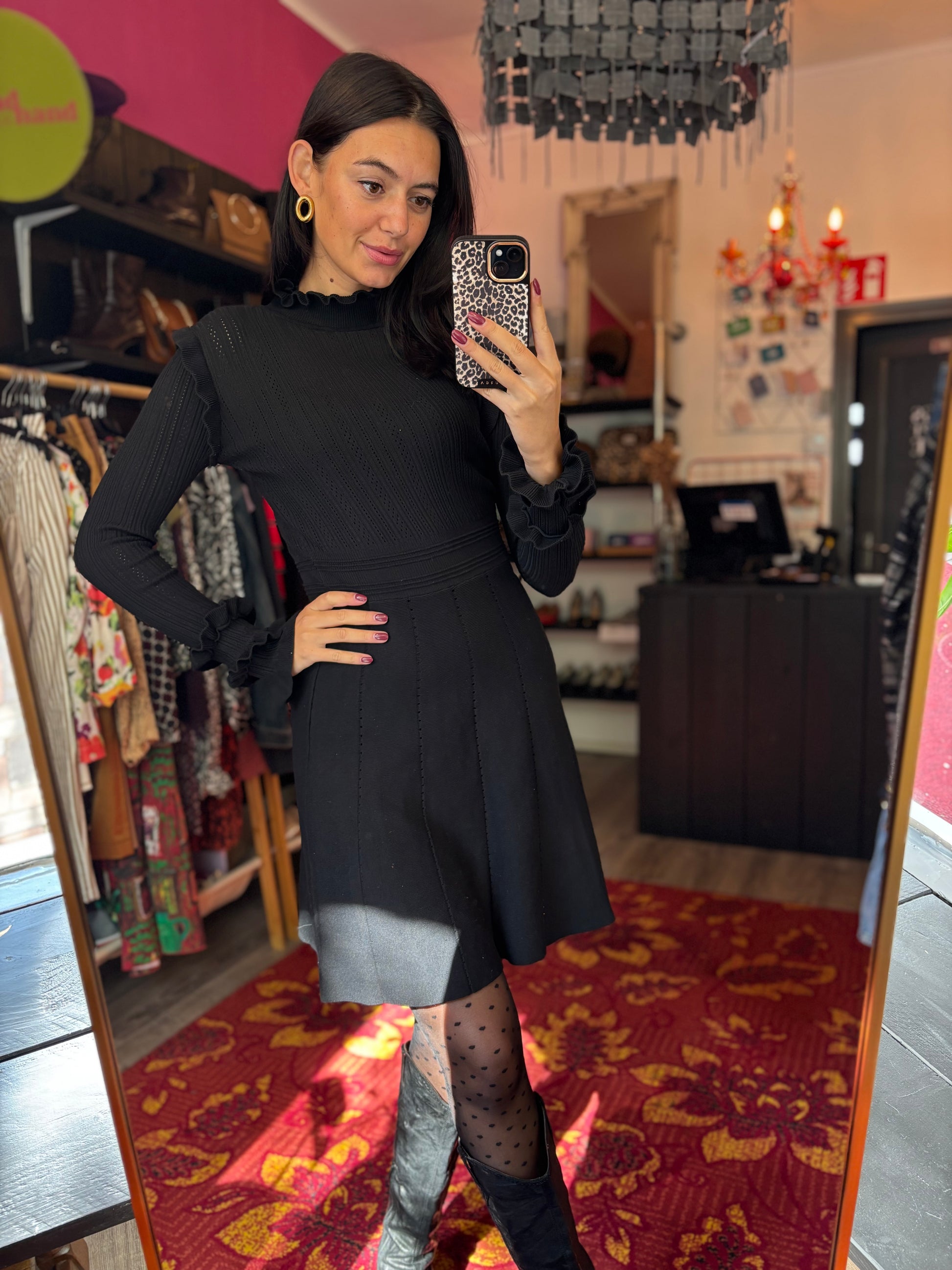 Dominique is 173 cm lang en draagt verschillende maten op de foto’s.