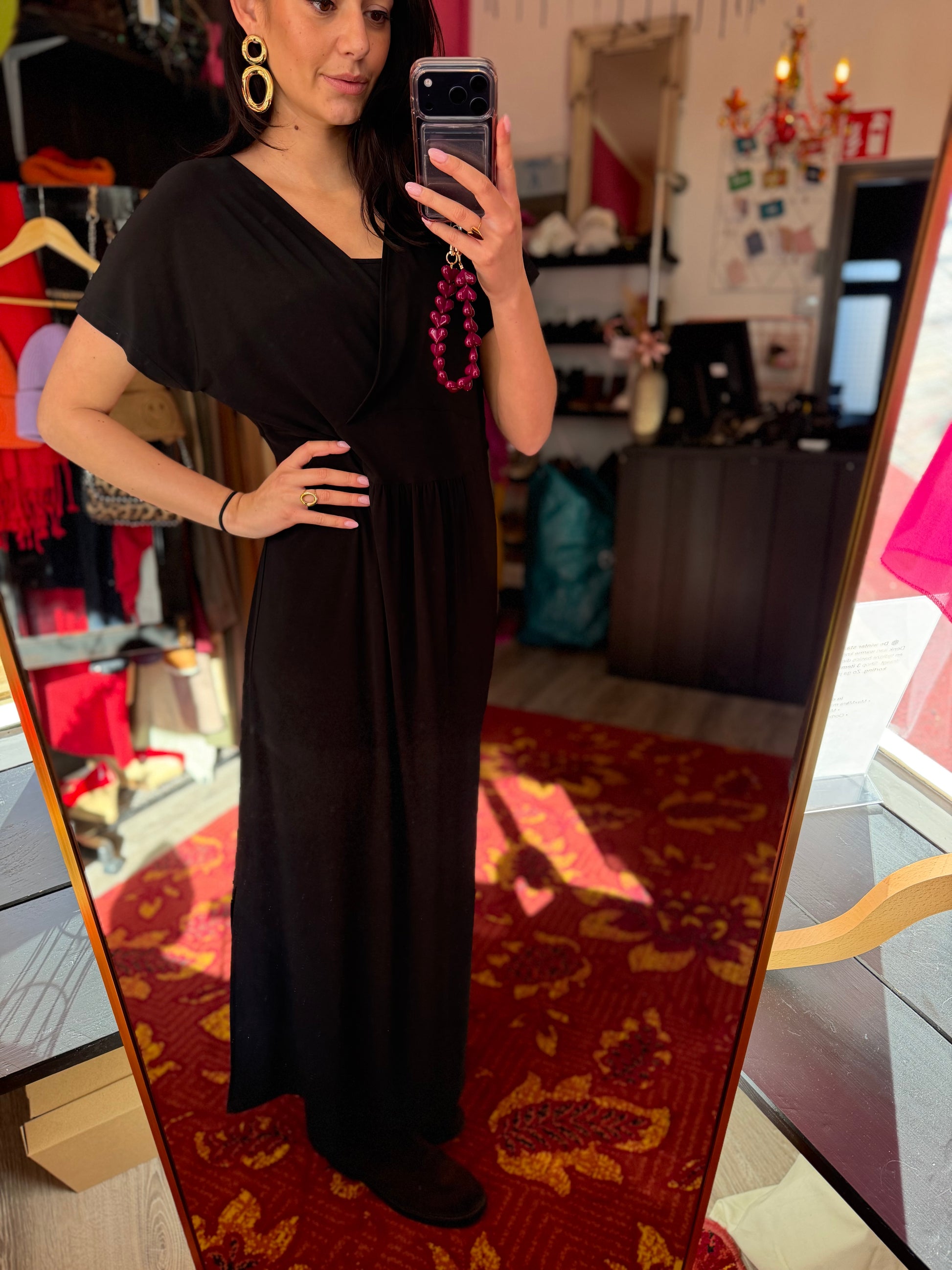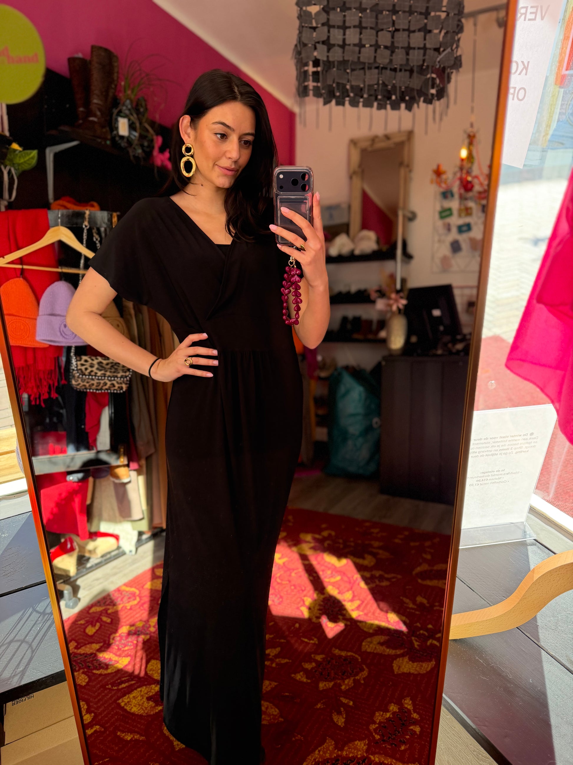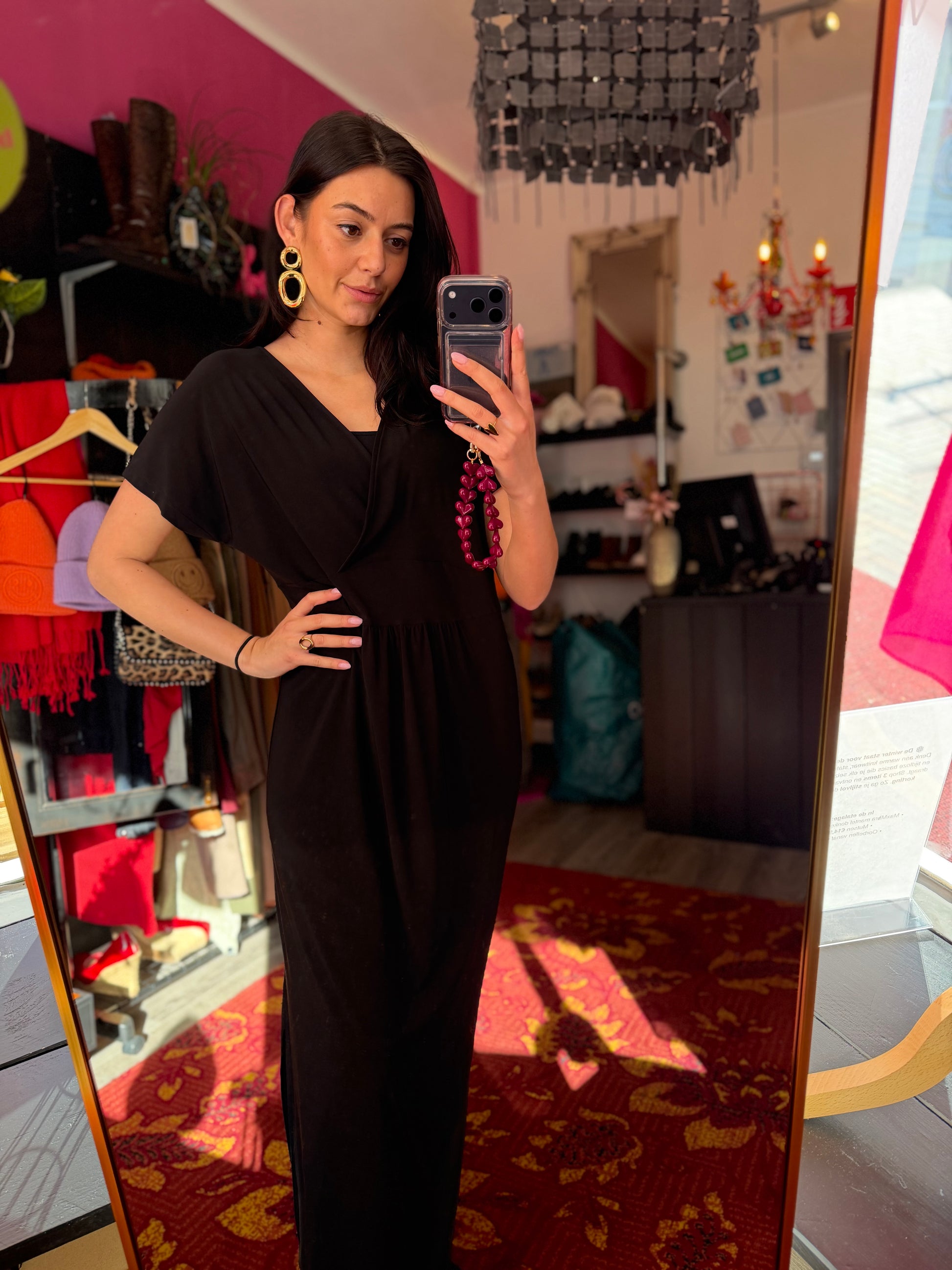 Dominique is 173 cm lang en draagt verschillende maten op de foto’s.