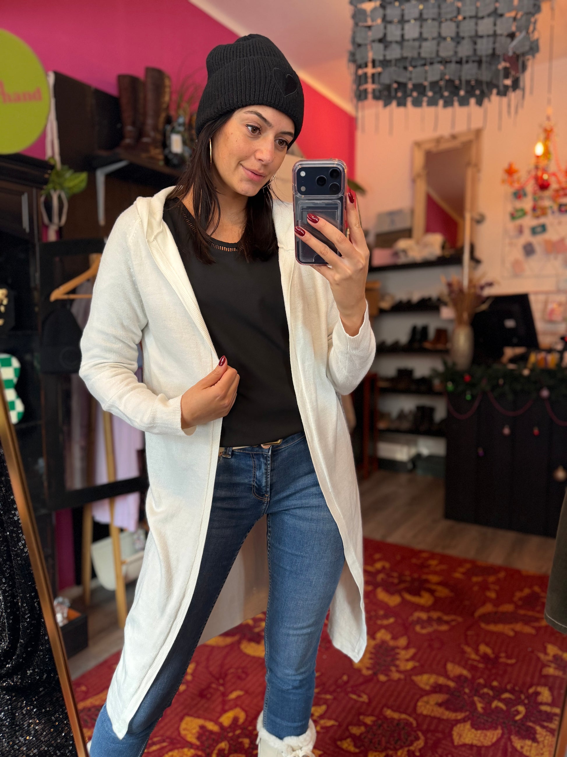Bij elk product staat de maat duidelijk vermeld. Dit is de exacte maat zoals aangegeven op het label. Om een zo goed mogelijk beeld van de pasvorm te geven, gebruikt Dominique soms clips om de kleding mooi passend te maken voor de foto’s.