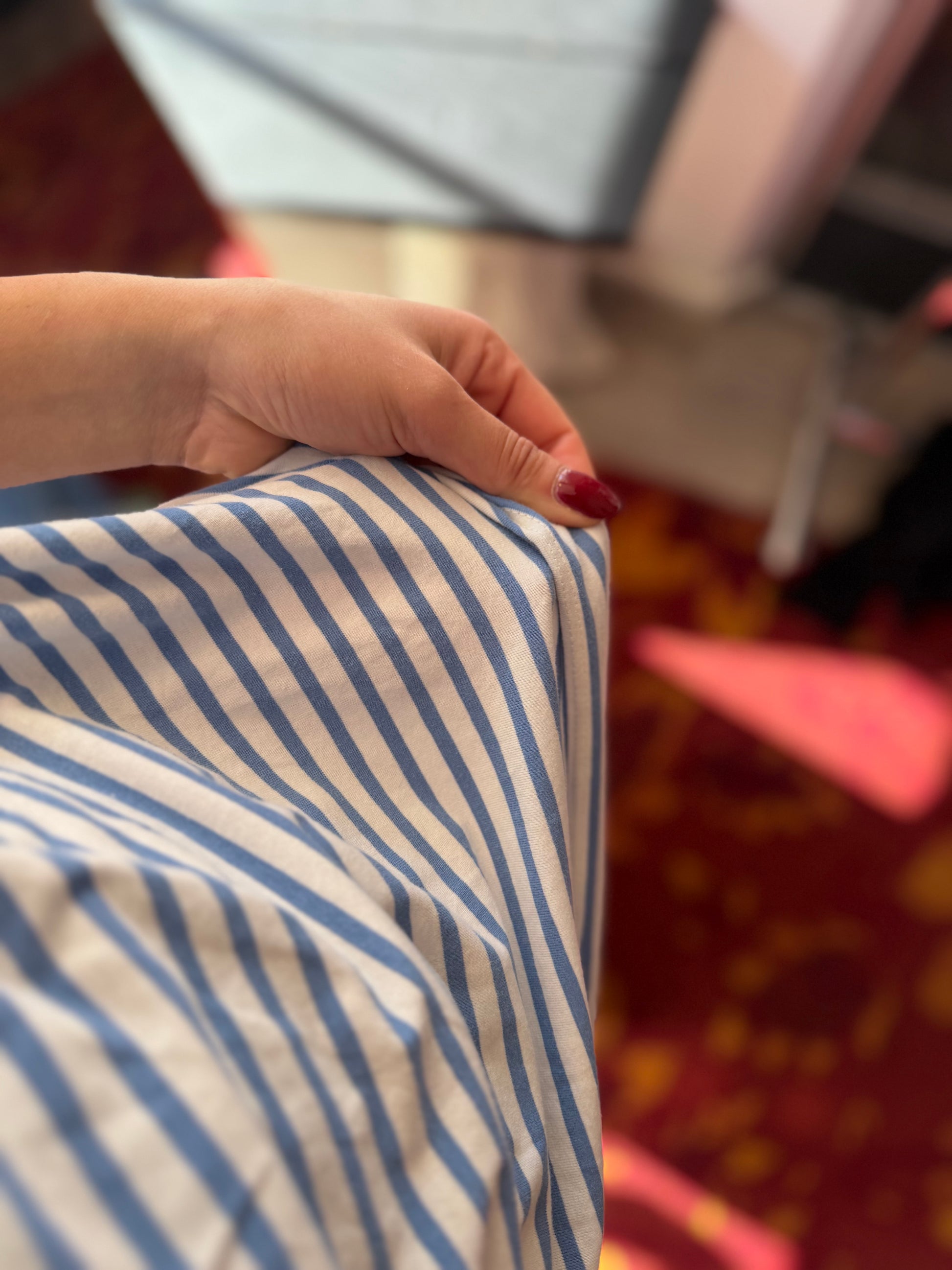 Bij elk product staat de maat duidelijk vermeld. Dit is de exacte maat zoals aangegeven op het label. Om een zo goed mogelijk beeld van de pasvorm te geven, gebruikt Dominique soms clips om de kleding mooi passend te maken voor de foto’s.