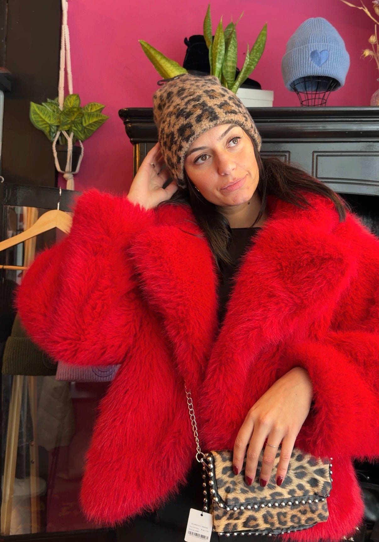 Geef je herfst- en wintergarderobe een stoere en trendy upgrade met deze luipaard-muts. De opvallende luipaardprint geeft je outfit direct een fashionable uitstraling en maakt dit accessoire perfect voor wie houdt van een statement look, ook tijdens koude dagen.