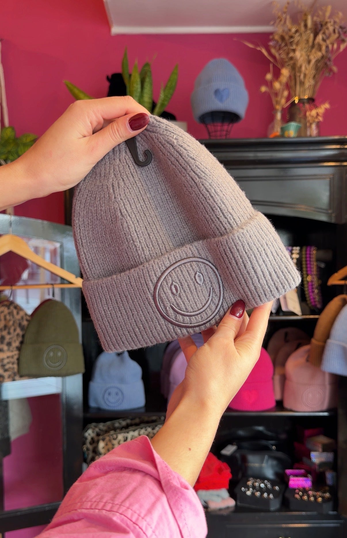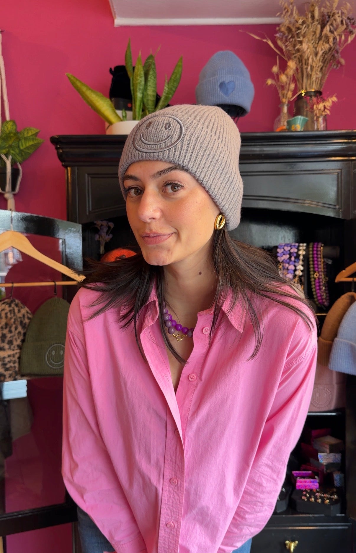 Breng direct een vrolijke touch aan je herfst- en wintergarderobe met deze trendy smiley-muts. De speelse geborduurde smiley zorgt voor een positieve uitstraling en maakt elke outfit net wat leuker, perfect voor wie ook op koude dagen wil stralen.