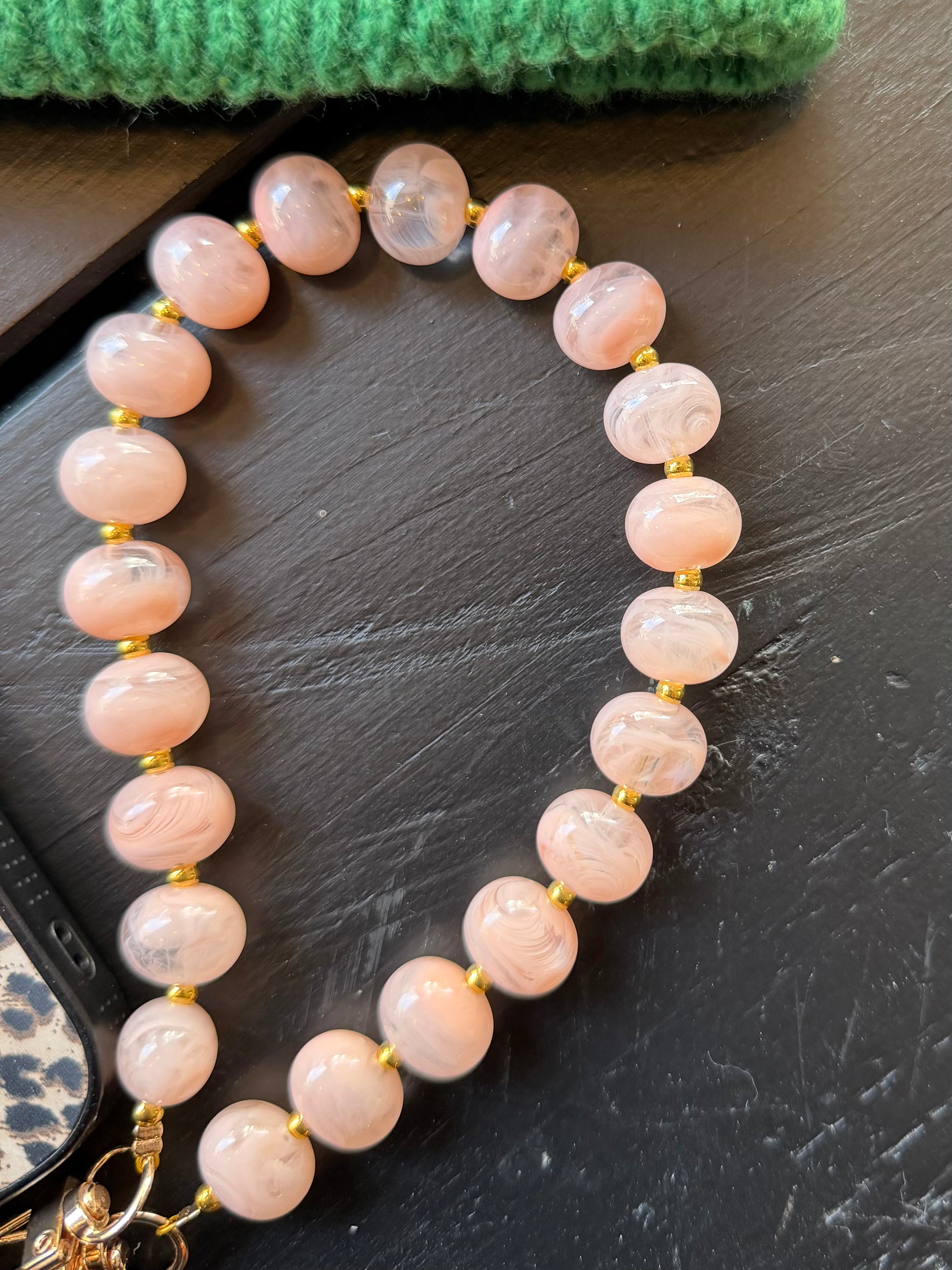 Upgrade je look met dit 34 cm telefoonkoord! Verkrijgbaar in allerlei kleuren en designs, zodat je elke dag een andere vibe kunt matchen. Compact, stevig en superhandig als je je handen vrij wilt houden terwijl je er toch stijlvol bij loopt.